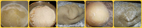 Cuando tenga este aspecto, ponemos en la cubeta de la batidora todos los ingredientes para la masa. 600 gr. de  harina, todo el fermento que hemos preparado, 5 huevos, el azúcar y la miel, las esencias y la ralladura de naranja, una pizca de sal y 150 gr. de mantequilla.