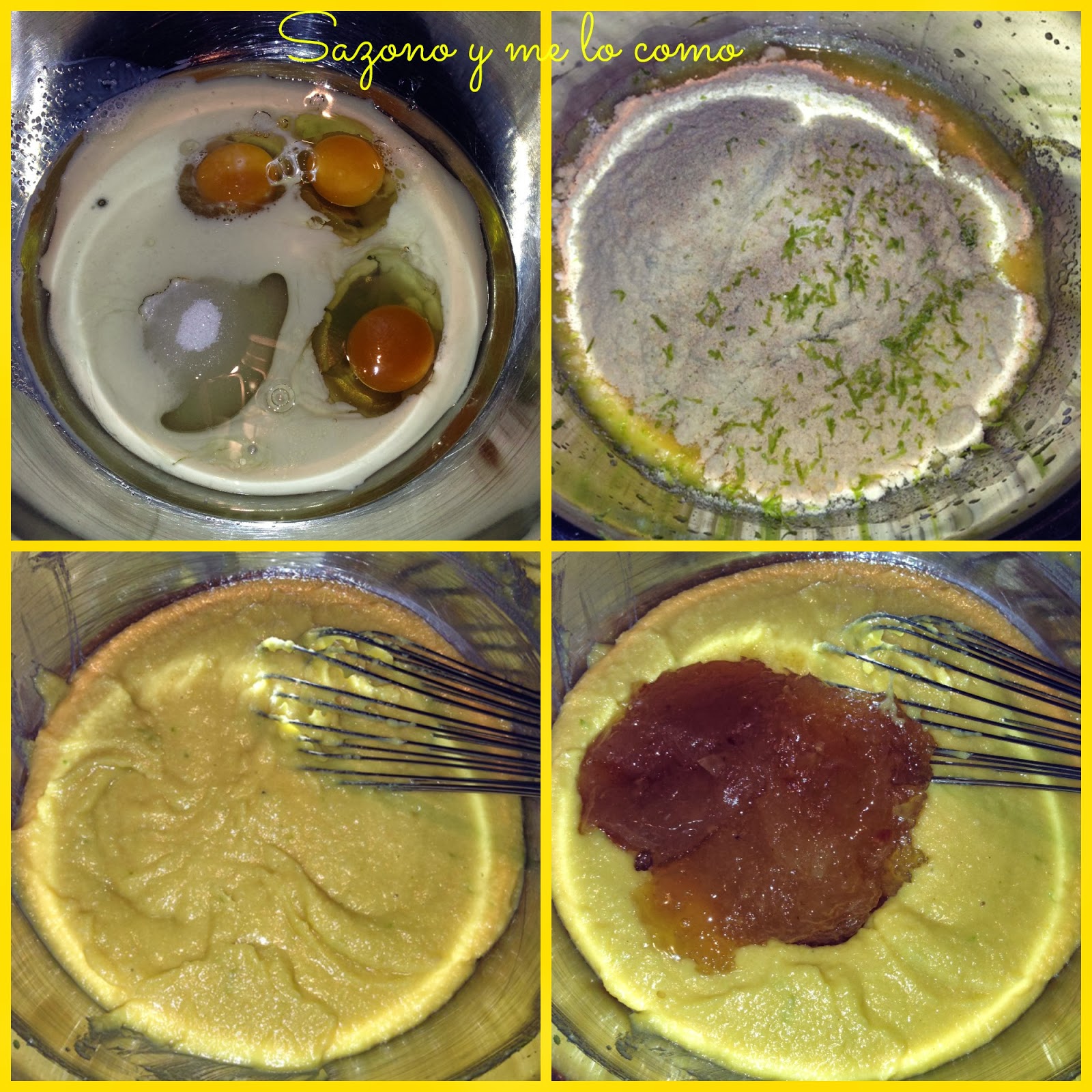 Añadimos la harina, la sal, la ralladura de limón y la almendra y mezclamos bien con las varillas.